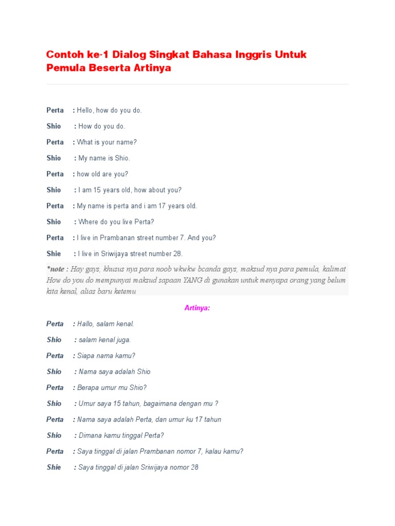 Contoh Percakapan Bahasa Inggris tentang Perkenalan. Ketika kalian bertemu di kelas atau ketika sedang bercakap cakap dari. Di dalam bahasa inggris ada beberapa macam.